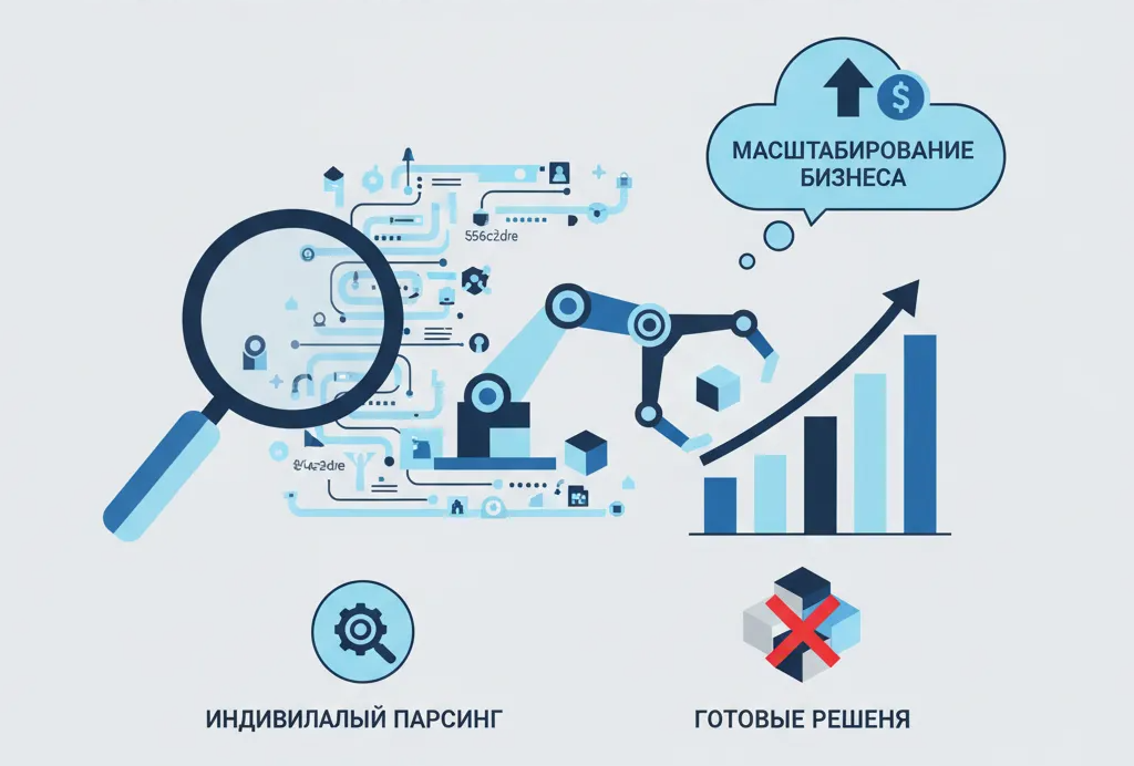 В этом случае на первый план выходит индивидуальный парсинг, или "Парсинг под ключ". Его ключевое отличие — создание уникального программного парсера, предназначенного для решения конкретной задачи на конкретном сайте. Это не просто инструмент, а инженерное решение, которое начинает работать там, где стандартные методы бессильны.