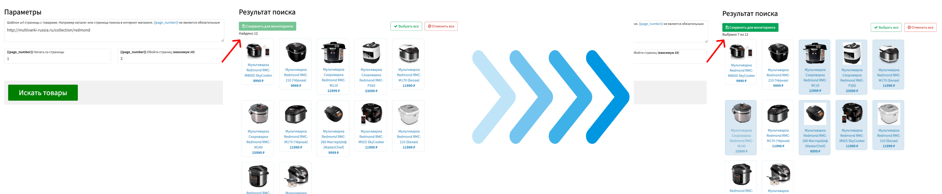 лок на карточки товаров с каталога одного сайта. Это значительно ускорить настройку вашего парсера. Визуализация товаров на одной странице сделает добавление их в парсинг максимально удобным.