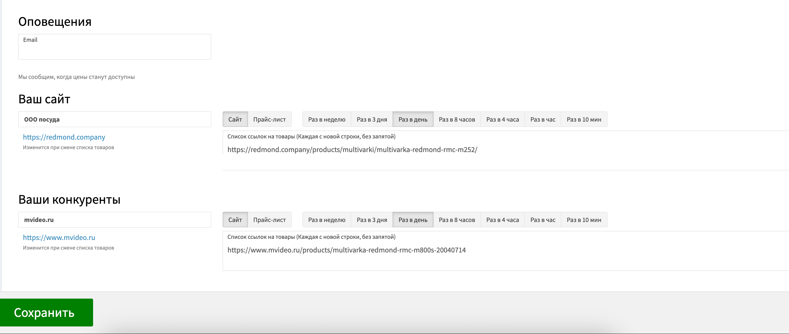 - Прежде чем настраивать парсинг категории товаров, добавьте для этого парсинга ссылку на любой из товаров с этого сайта и убедитесь в том что парсинг это позиции завершился успешно. Это актуально для каждой последующей компании которую вы хотите парсить - сначалы добавляете ссылку с товаром с этого сайта и только потом настраиваете парсинг категории товаров.