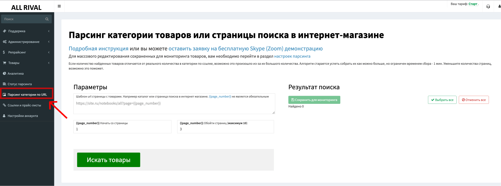 - Таким образом возможно парсить каталоги до 10 страниц, если страниц в каталоге больше - возможно вам стоит или сузить диапазон товаров или рассмотреть вариант подключения услуги “Парсинг под ключ”.